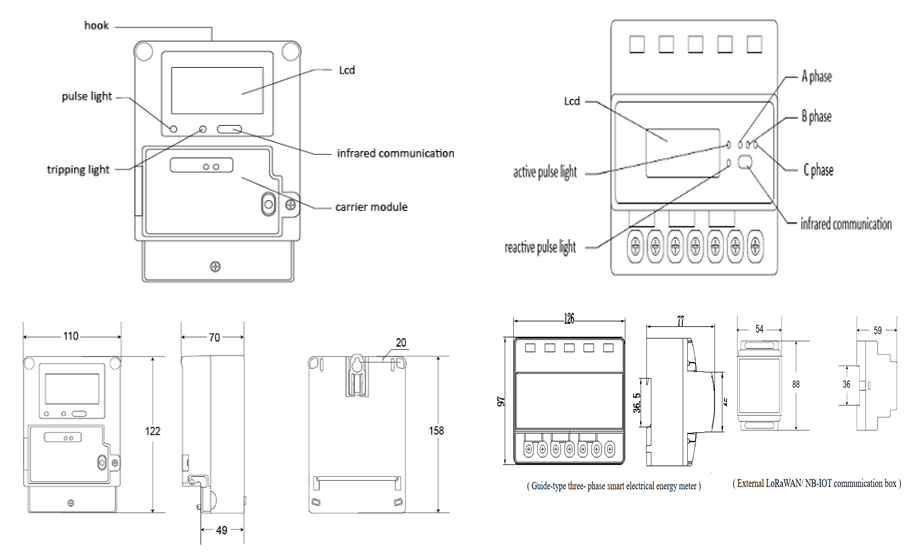 3) The meter is compatible with RS485 interface, NB interface and optional far infrared interface.